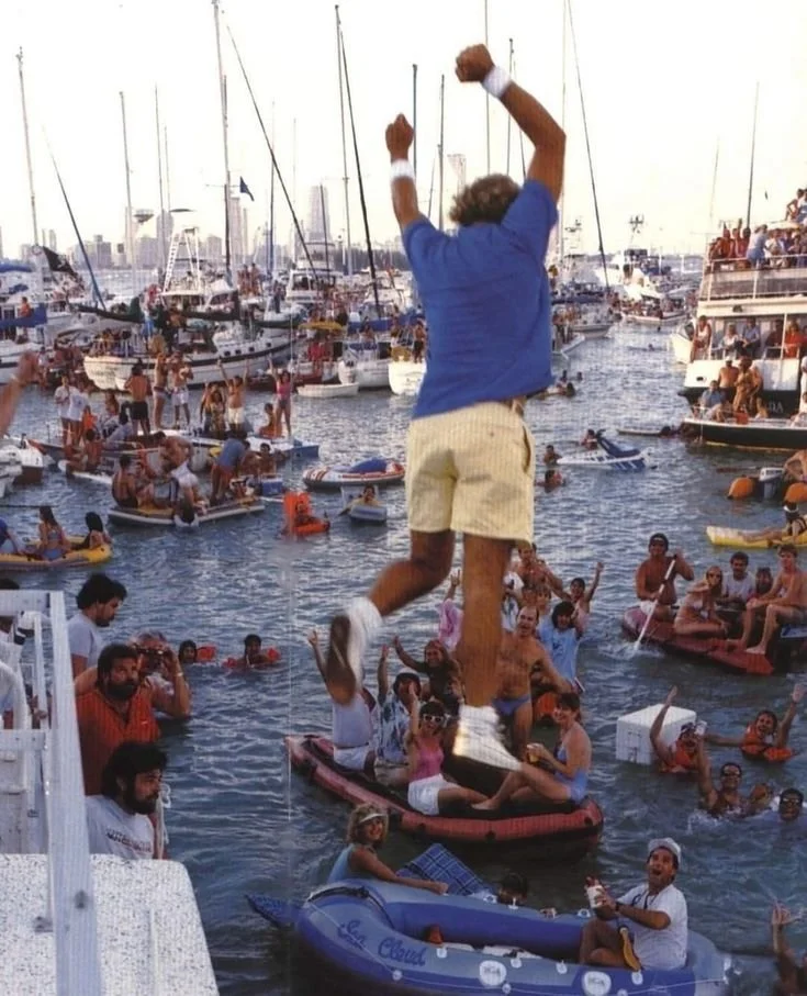 Think yacht rock, sailor mischief, captain energy This is a costume party — lean into it. Blue-and-white stripes, breezy linen, gold buttons, scarves, sailor hats, ropes, sunglasses at night. Vintage coastal cool with a playful edge. Dress like you’re on a yacht. Party like you’re not supposed to be.Look like you just stepped off a 1980s yacht and never made it home.Look like you just stepped off a 1980s yacht and never made it home.
